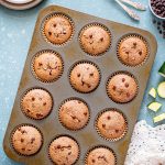 Gluten Free Zucchini Muffins couldn't be any easier to make! Add the ingredients to your blender, mix, pour, and bake. These gluten free muffins are packed with zucchini, chocolate, and cinnamon and are tender, light and fluffy. Make some today with your extra zucchini! #glutenfreemuffins #zucchinimuffins #glutenfreezucchinibread