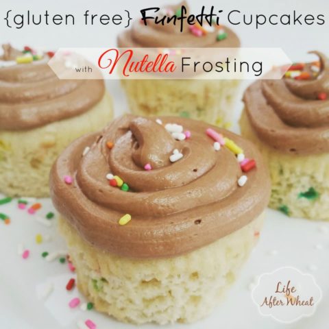 When I found the new Pillsbury Funfetti cake mixes at my local Target for $2.50 a box I knew I had to buy a few. Pillsbury makes a pretty good gluten free cake mix, but adding Nutella frosting and a few sprinkles really takes these to the next level!