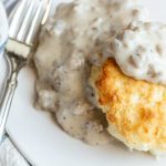 What's better than a perfectly light and fluffy gluten free biscuit? A perfectly light and fluffy gluten free biscuit smothered in gravy, of course! You'll love this simple yet delicious recipe for Gluten Free Biscuits and Gravy. #glutenfreebiscuits #glutenfree