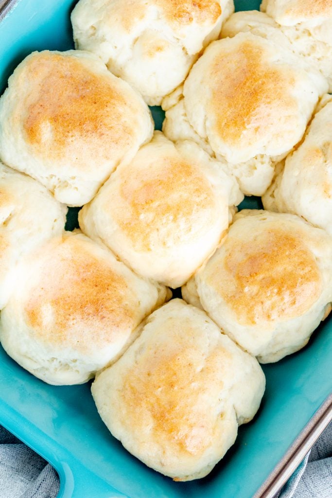 NOTE that if you've made adjustments to the recipe such as skipping the egg wash and/or omitting the milk powder, the rolls might not brown much.